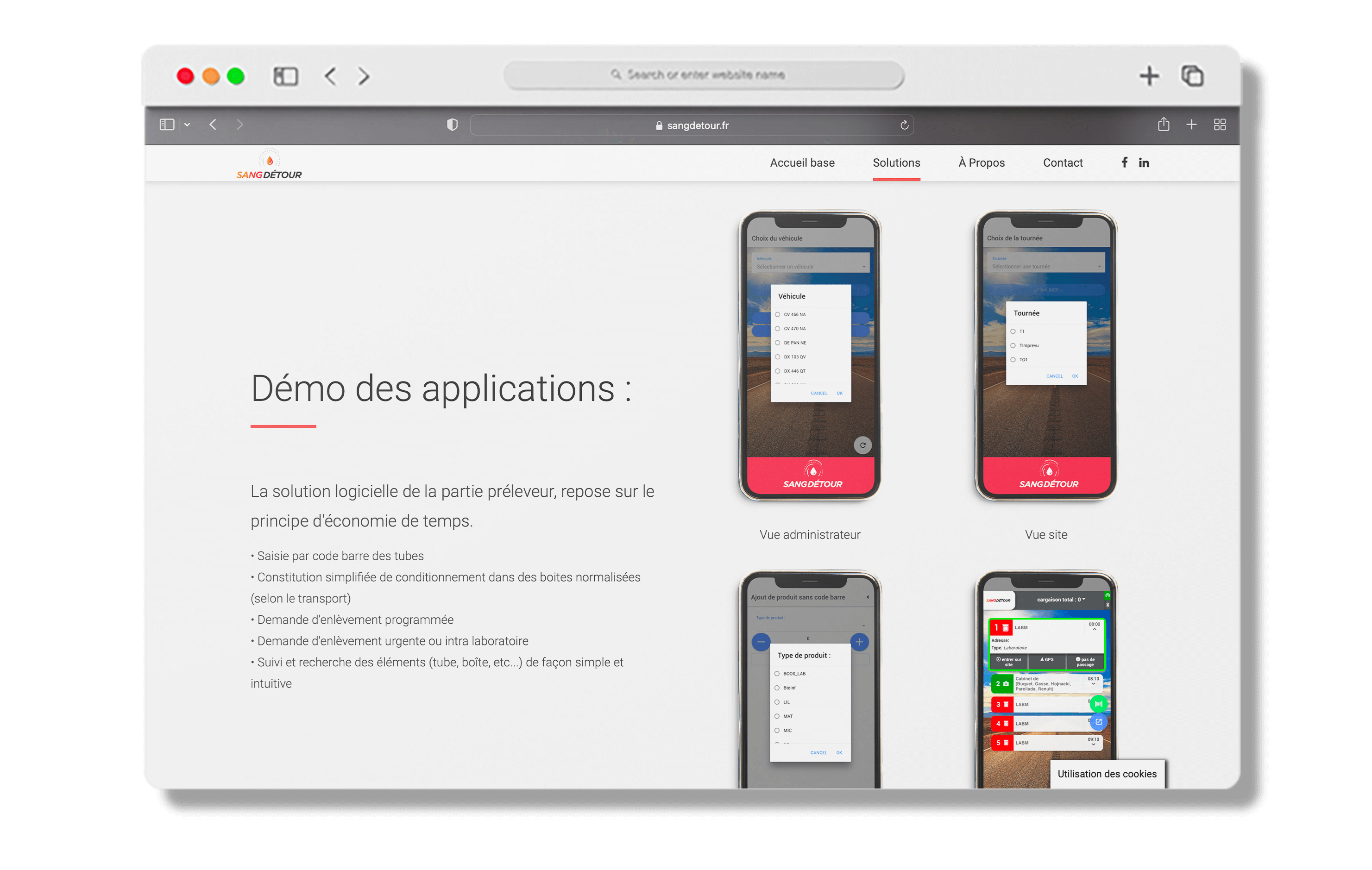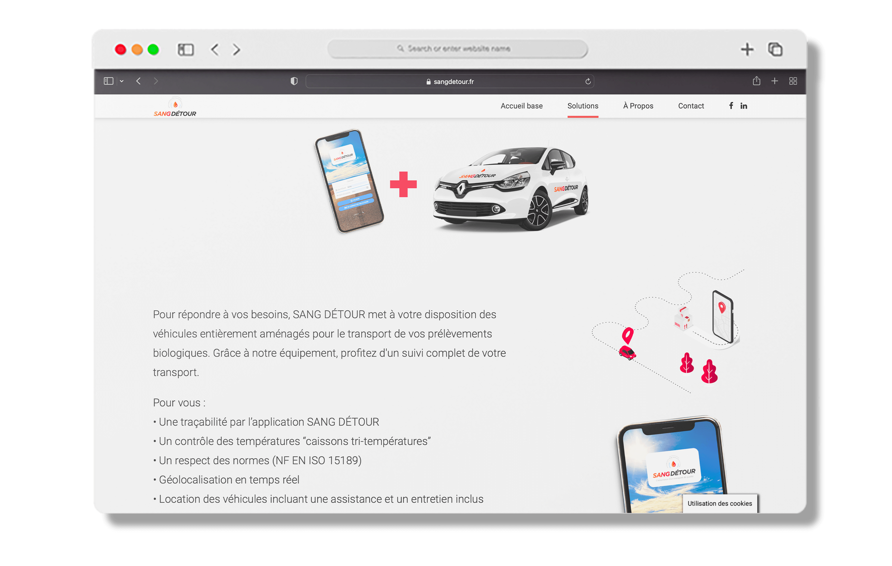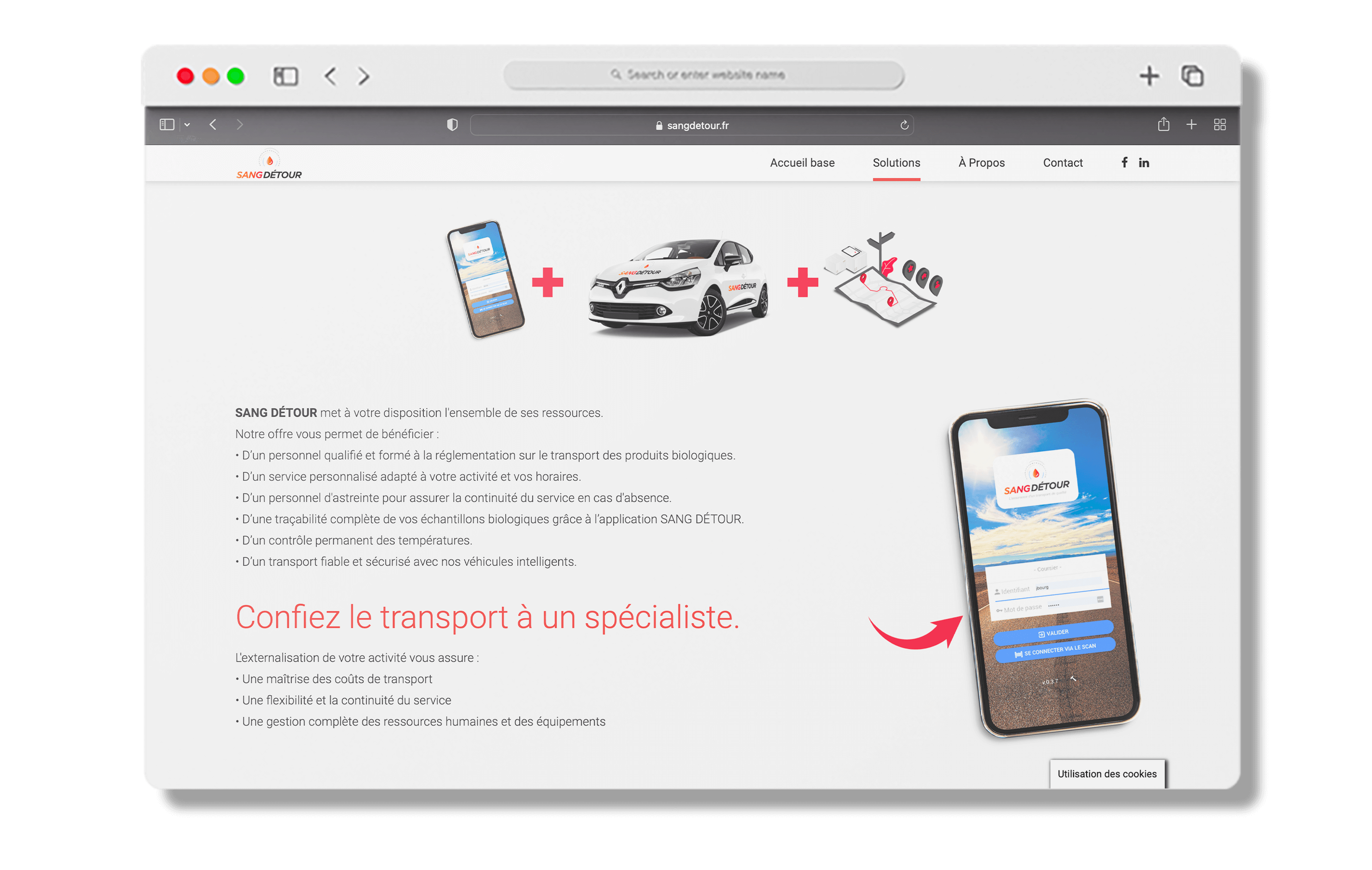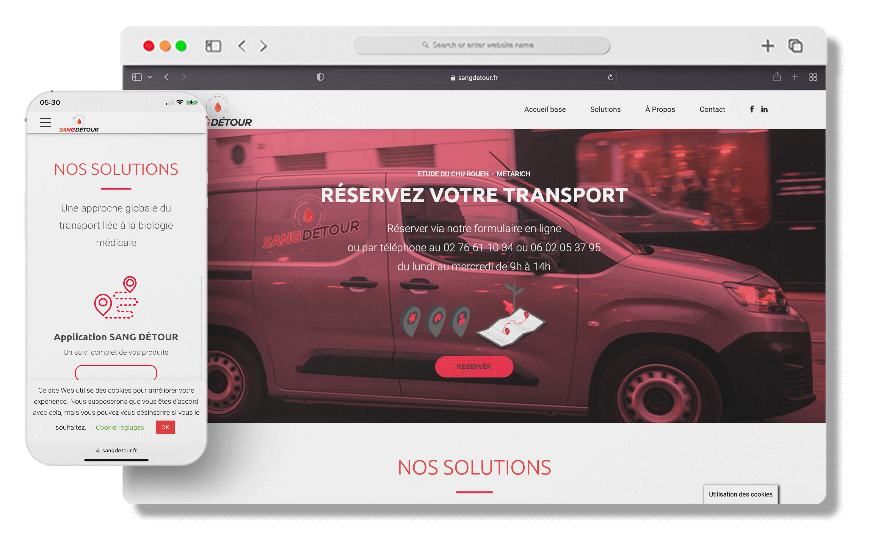 Nous avons eu l’honneur d’accompagner notre client Sang Détour, une entreprise spécialisée dans le transport d’analyses et de matériels médicaux, pour la création de leur site web. Conscient de l’importance d’une présence en ligne professionnelle et efficace, Sang Détour a choisi de faire appel à notre agence pour concevoir un site web adapté à leur secteur d’activité et à leurs besoins spécifiques.